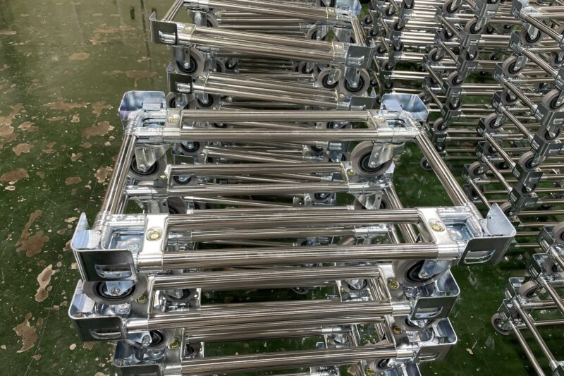 안녕하세요. 대차를 전문으로 제작해드리고 있는 (주)피제이시스템입니다. 인천광역시 서구에 위치한 금형업체에 납품해드렸습니다. 위 제품은 바닥대차라고도 불리며, 이동대차 또는 막대차라고 불립니다. 명칭과 같이 제품을 적재한 후 이동하기 위한 용도로 사용되며, 바퀴가 4개가 달려있어서 이동이 편리합니다. 또, 박스를 다단으로 적재하여 다른 공정으로 이동하기 위한 용도로써, 사람이 직접 들고 이동하지 않아도 되는 가장 효율적인 제품입니다. 부품의 구성은 원형 파이프(PIPE)와 메탈조인트 및 볼트, 너트로 구성되어 있으며, 조립식 구조로 보실 수 있겠습니다. 원형 파이프랙의 특징은 맞춤제작이며, 고객분께서 불러주시는 치수로 제작이 가능합니다. 또한, 설계 자격증을 보유한 엔지니어가 직접 3D모델링을 통해 구조를 잡아드리고 있으며 상상하는 구조 및 형태로 설계 후 제작해드리고 있습니다. 용접식이 아닌 조립식 파이프랙을 선택해야하는 이유는 첫번째로 수정이 용이하다는 점입니다. 용접물은 용접으로 이음쇠를 굳혀서 제작한 반면, 파이프랙은 볼트와 너트로 체결하여 제작했기 때문에 수정이 가능한 큰 장점이 있습니다. 예를 들어, 설계 후 제작하고 제품을 고객분께서 받고 실질적으로 사용했을 때 작업 환경이나 작업 효율에 따라서 단 높이나 위치 변동이 있을 경우 파이프랙은 가능합니다.