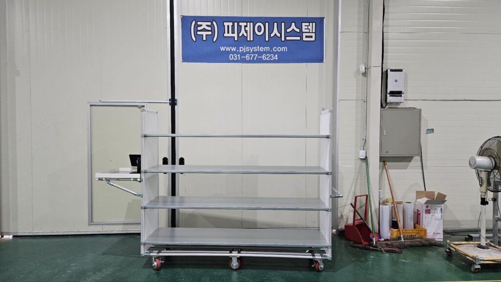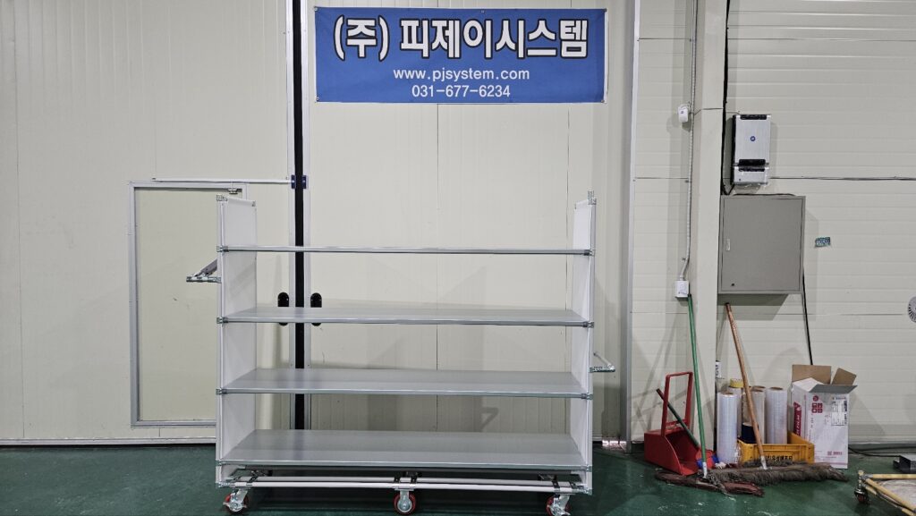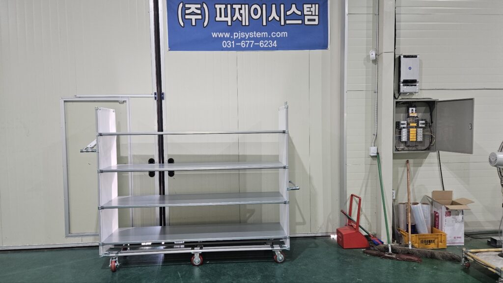 대차를 전문적으로 제작하고 납품해드리고 있는 기업 “(주)피제이시스템”입니다.