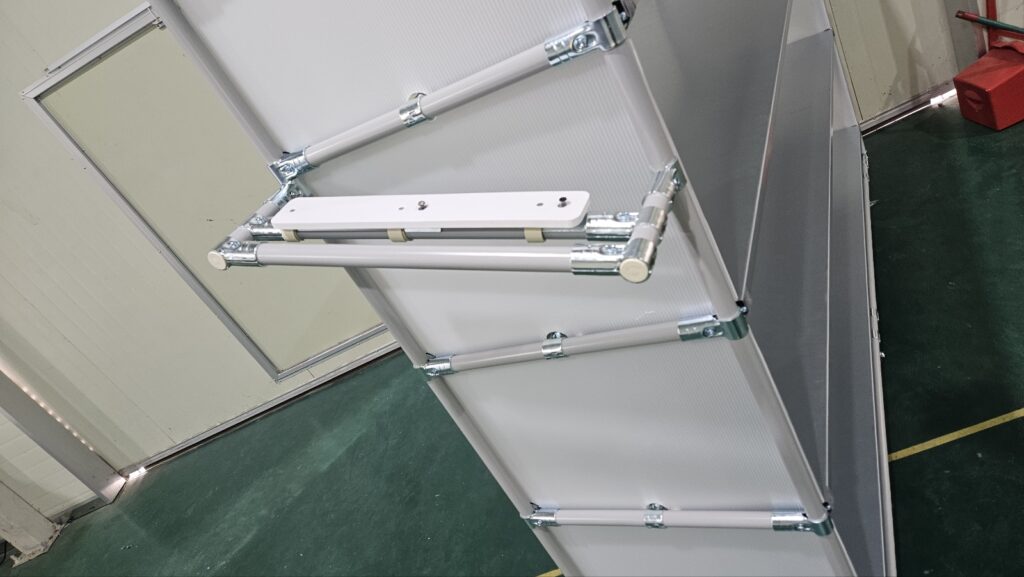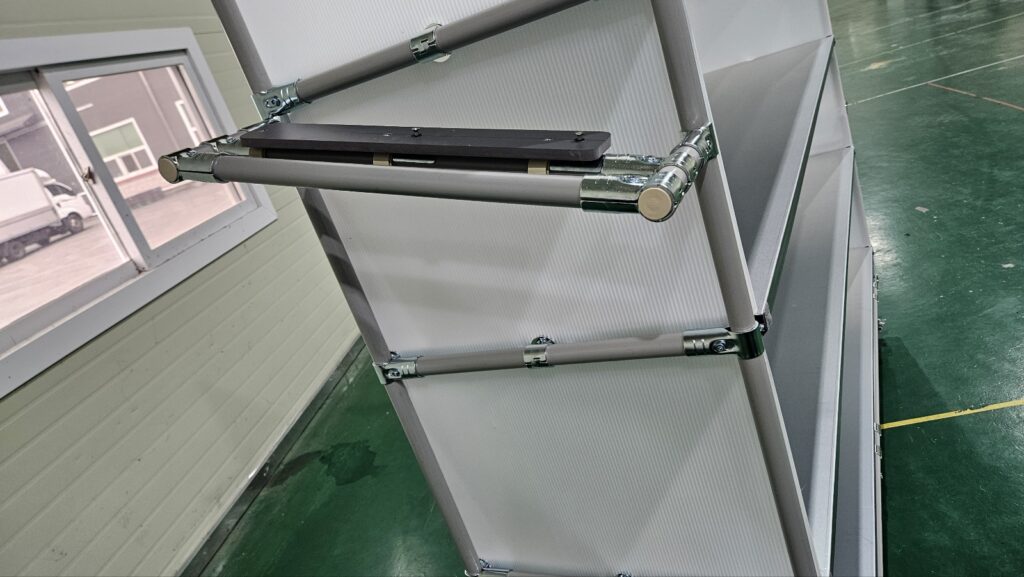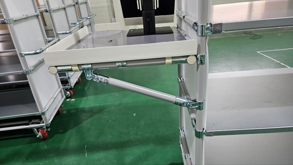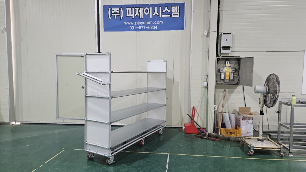 외측 기준 우측에는 손잡이, 좌측에서는 생산관리 및 출하관리에 필요한 노트북을 놓기 위한 선반(검정색으로 되어있는 선반)이라고 보실 수 있습니다.