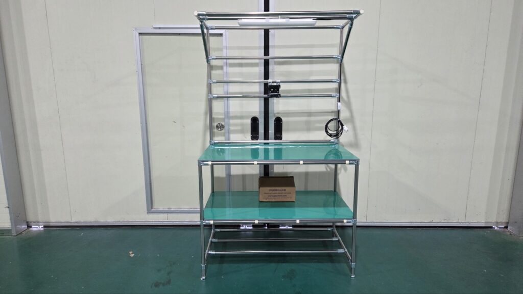 작업대 상부에 보이시는 브라켓은 모니터를 달 수 있도록 구조를 잡아드렸는데요.