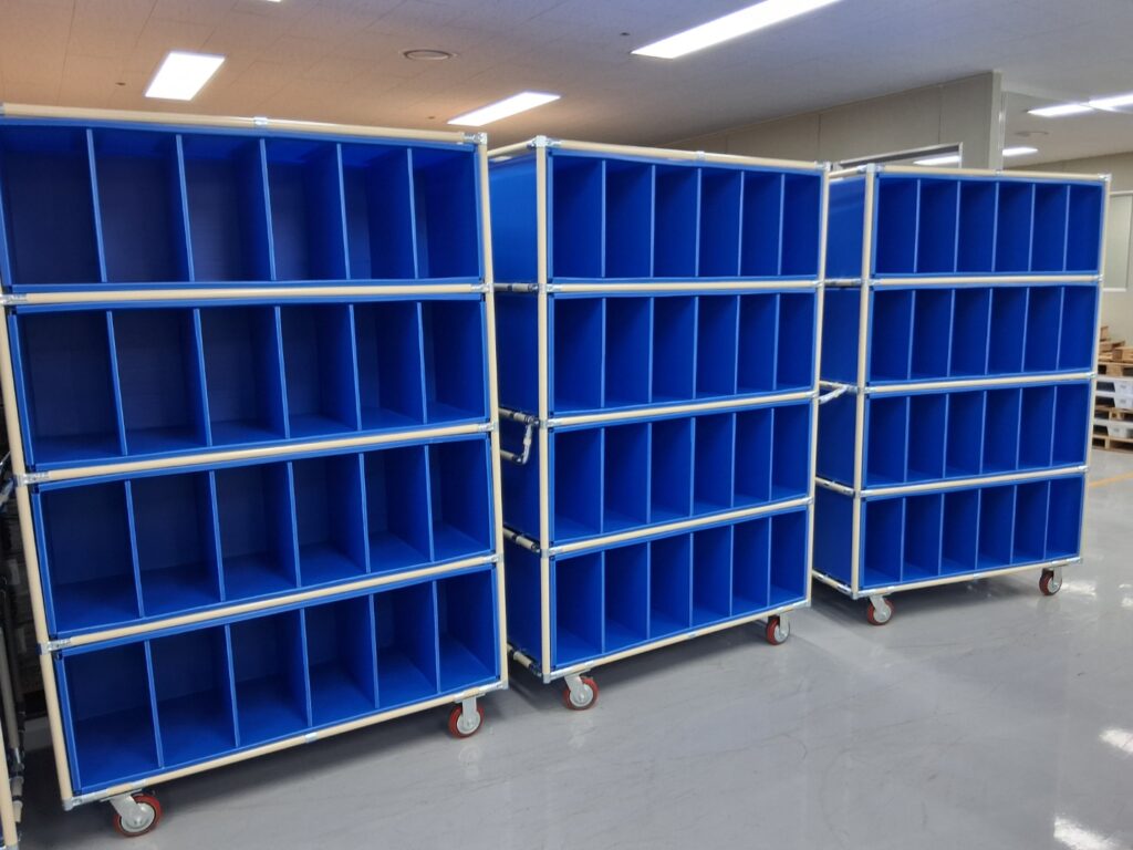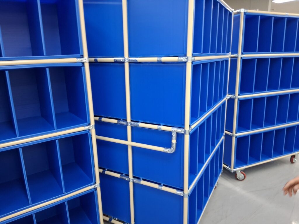흔하게 부르기도 하는 단프라 박스와 파이프대차를 콜라보한 제품이라고 보실 수 있으며, 명칭은 단프라박스대차 또는 납품용대차라고도 부릅니다.