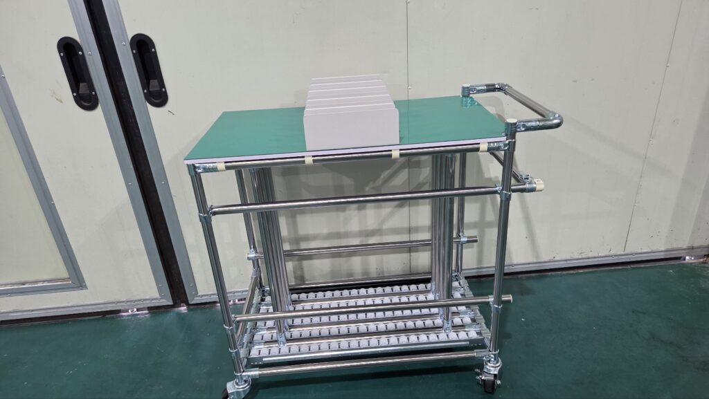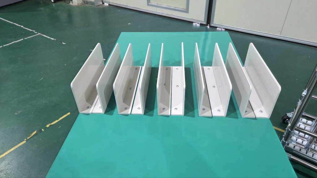 또, 제전매트 위에는 사용하시는 제품을 기대어 보관 할 수 있도록 수지앵글로 피스로 고정작업하였습니다.