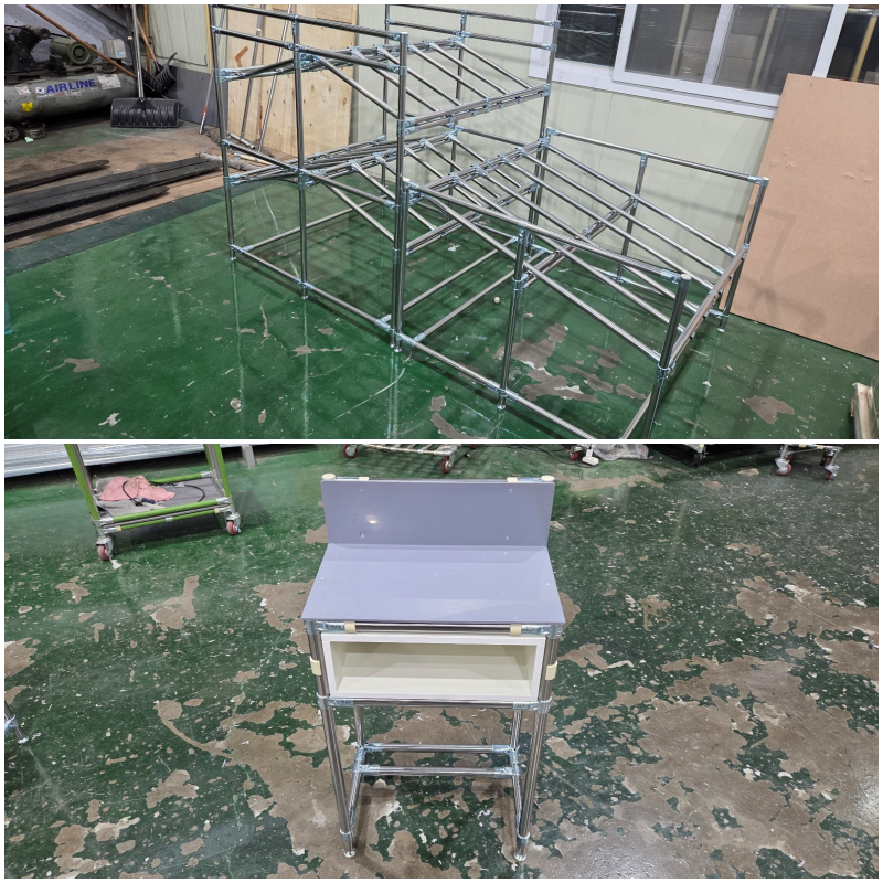 메탈조인트 PJ-1번으로 조립하는 방법도 있지만 그렇게 할 경우 조인트와 파이프의 단차 때문에 박스를 밀고 당길 때 불편함이 있을 수 있습니다.