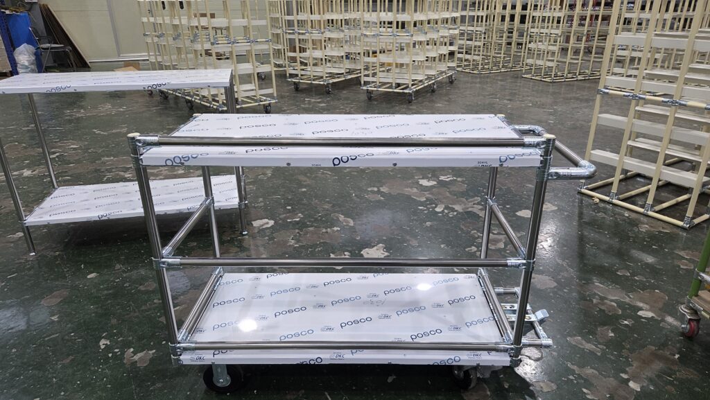 원형 파이프를 이용하여 조립식 대차를 전문으로 제작하고 있는 업체 (주)피제이시스템입니다.