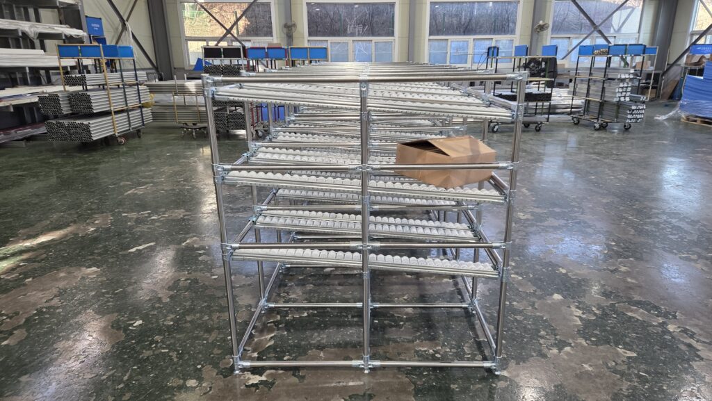 플라콘랙, 선입선출랙, 슬라이딩랙, 슬라이드랙, 파이프랙 등등…