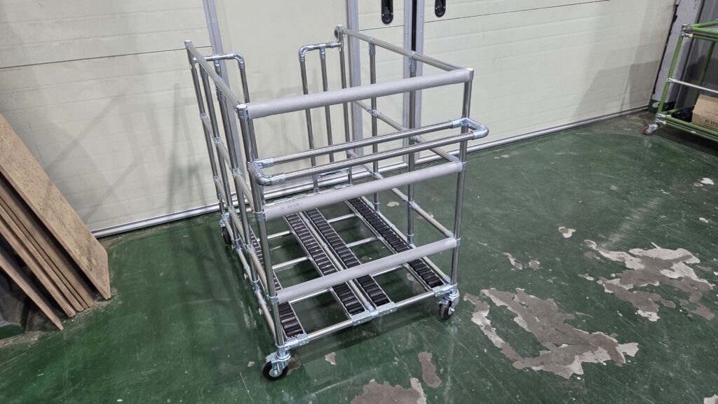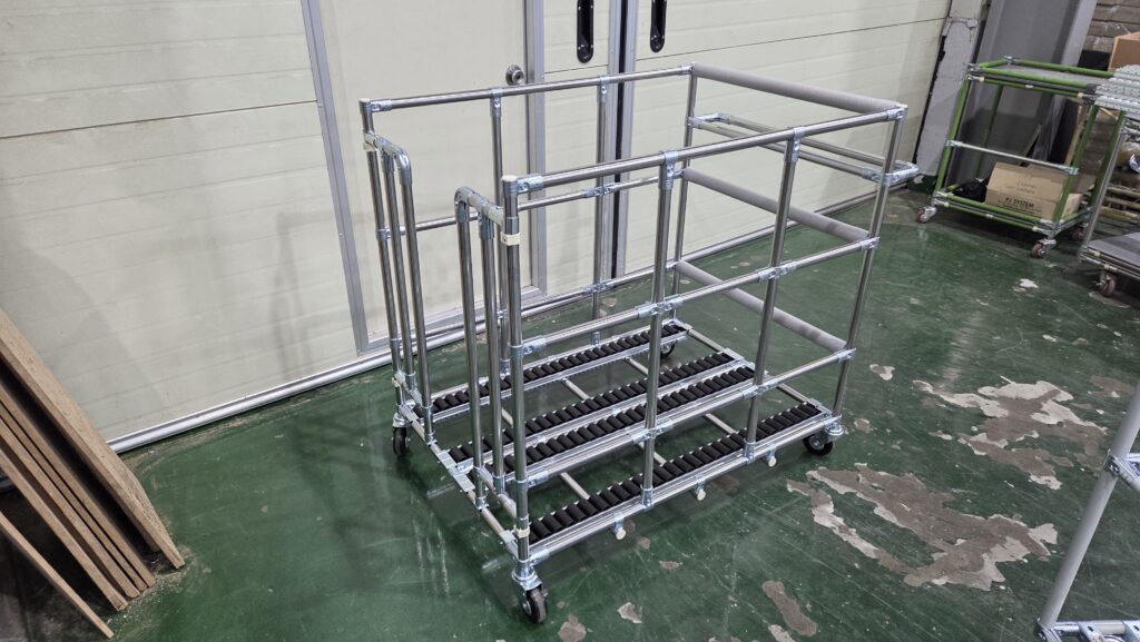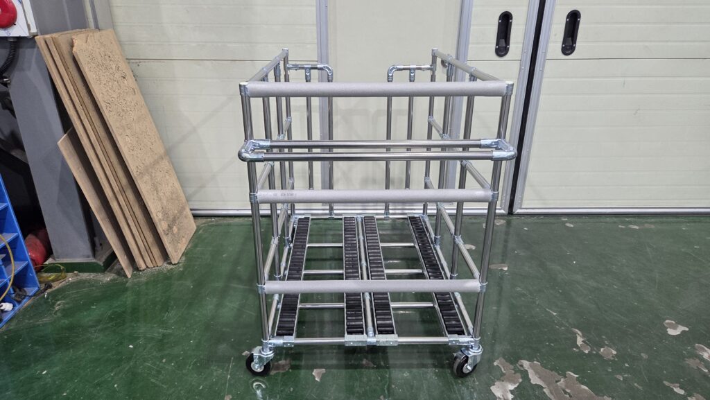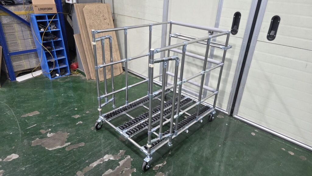 위 대차는 SUS 파이프 0.9T, 아연도금 처리된 Metal Joint 입니다.