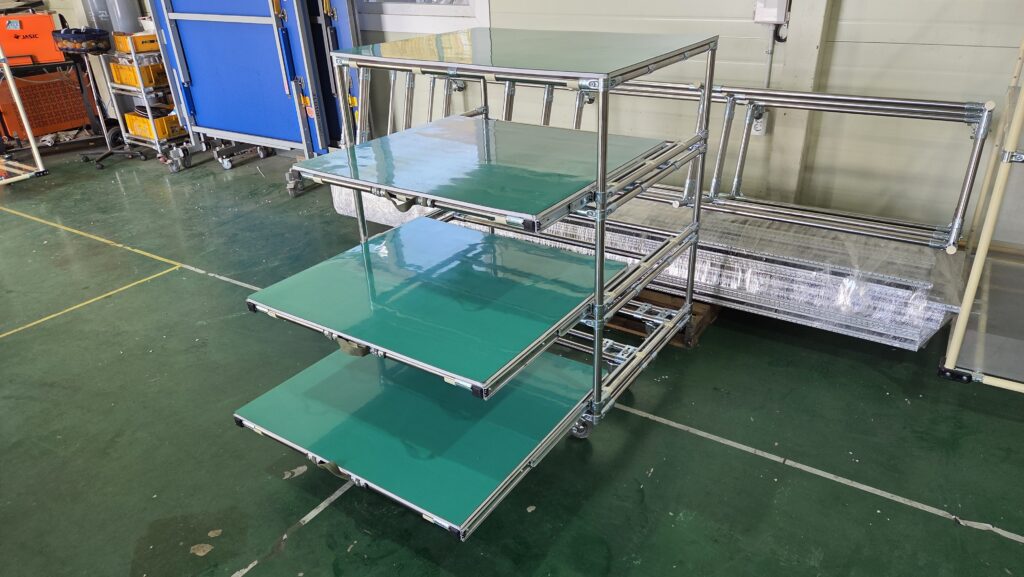 또, 의류기기를 적재하다보니 정전기 방지 기능이 들어가는 판 종류를 사용해야하는데 Pomax 10T + 제전매트 2T를 사용하여 조건을 맞춰드렸습니다.