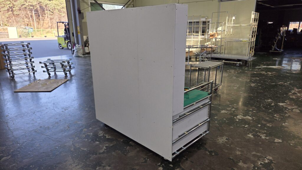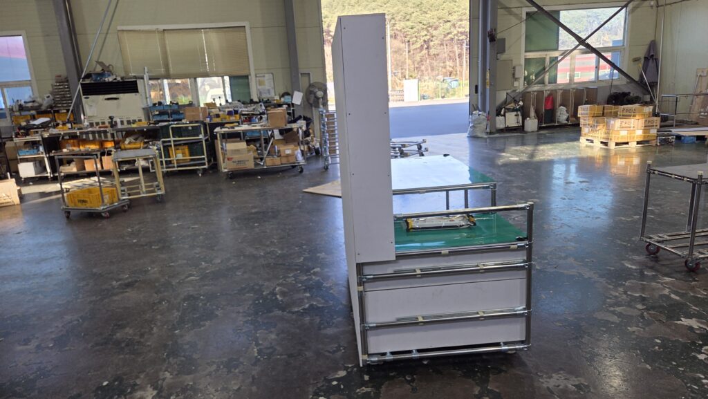 Main 다이 하부에는 뒤쪽으로 고정선반, 앞쪽으로는 이동선반을 제작해드렸습니다.