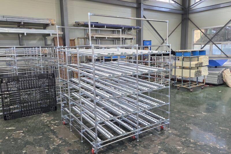 안녕하세요. 랙을 맞춤으로 제작해드리고 있는 업체 “(주)피제이시스템”입니다. 오늘은!! 롤러(플라콘)를 이용하여 자재를 보관할수있는 랙을 소개해드릴건데요~! 공장 내부의 자재보관라인에 배치해놓고 사용하기 아주 적합합니다. 업로드 했었던 선입선출랙과는 달리 조금 다른 사양이 보이실텐데요! 바로!
